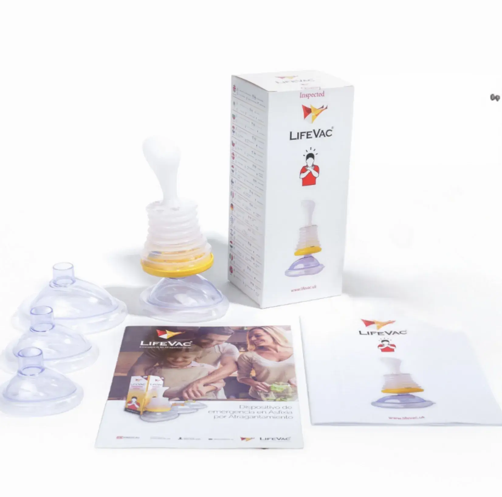 LifeVac is a suction device specially developed to clear an obstruction in the airway. Very easy to use, it is designed so that any user can act quickly in case of a choking emergency. Includes 4 masks of different sizes: Pediatric and sizes S, M, and L.