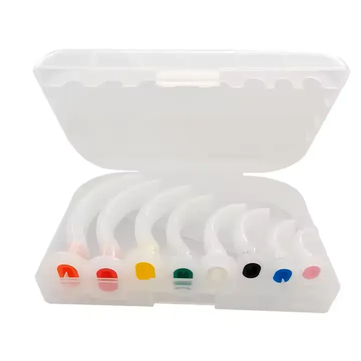 This device keeps the airway open by preventing the tongue from obstructing respiration. It is used in unconscious patients, and during emergencies, anesthesia, and resuscitation. Available in various color-coded sizes, it also allows for secretion suctioning.