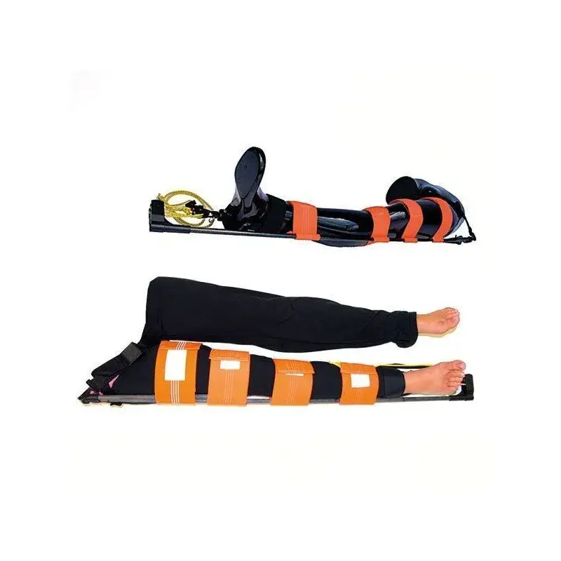 The CT-6 EMS® traction splint is designed for the rapid and effective immobilization of femoral fractures in prehospital settings. Its traction system, based on a precision-adjustable rotating rod, allows for accurate and controlled traction, while its lightweight and durable structure ensures patient stability and comfort. The splint features integrated, padded straps for secure application even in confined spaces.